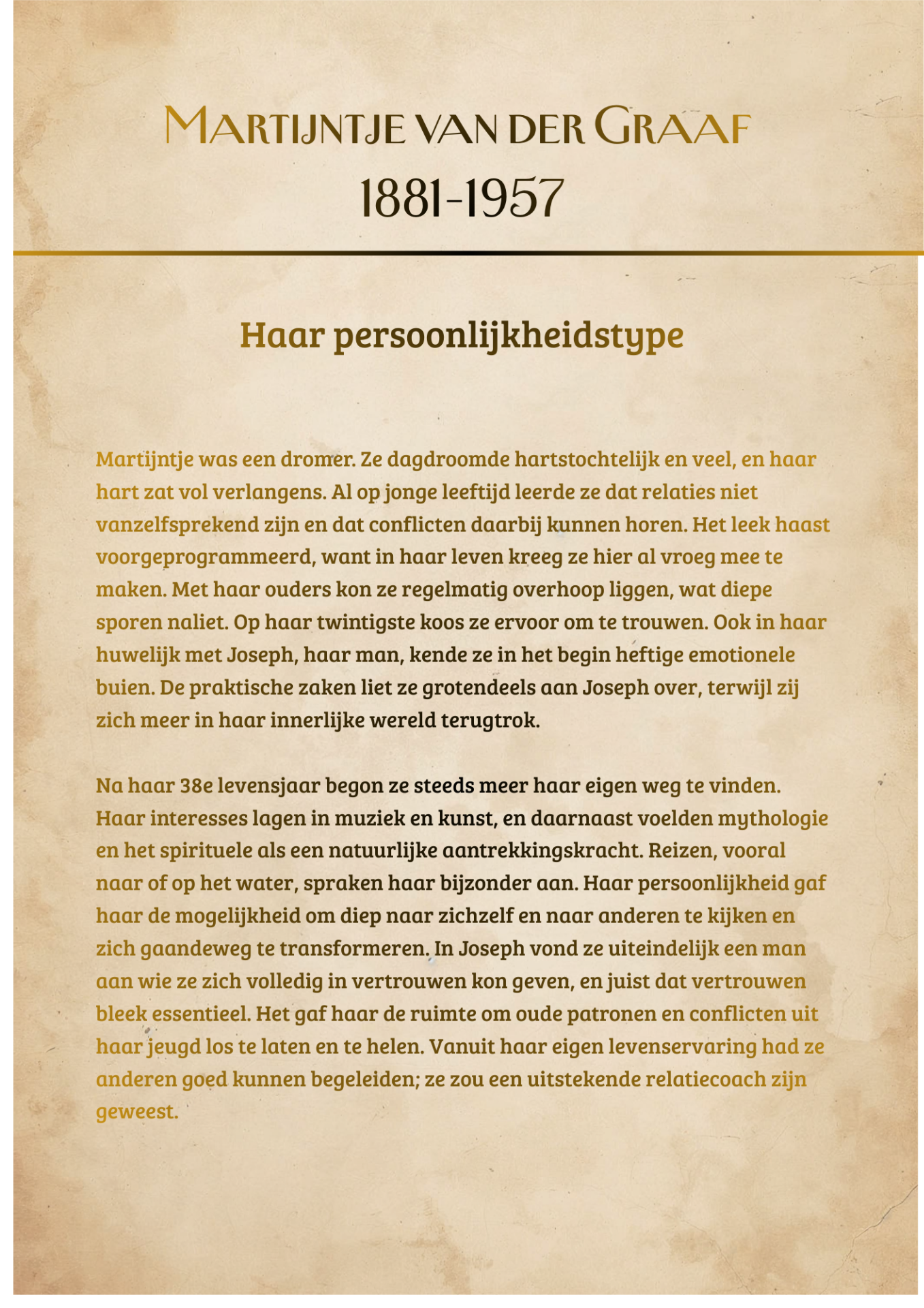 Met behulp van historisch onderzoek en numerologie maak ik persoonlijkheidsschetsen (eventueel verwerkt in een m0oi verhaal in boekvorm) die hun leven verdiepen en betekenis geven.